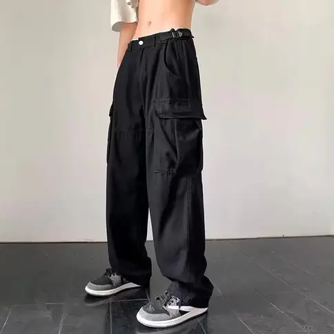 Men’s Nylon Cargo Pants Six-Pocket Tactical Straight Baggy Outdoor Trousers